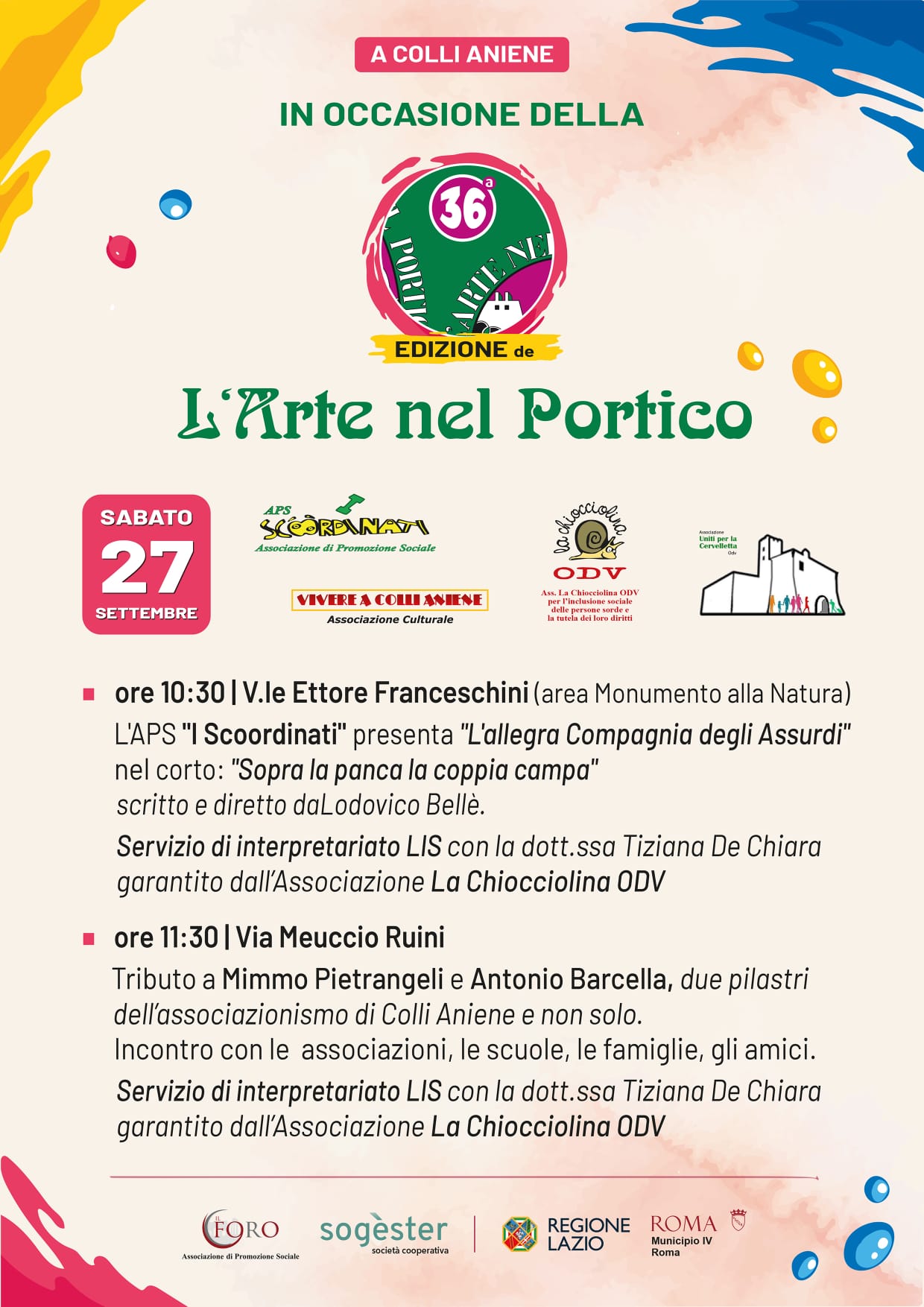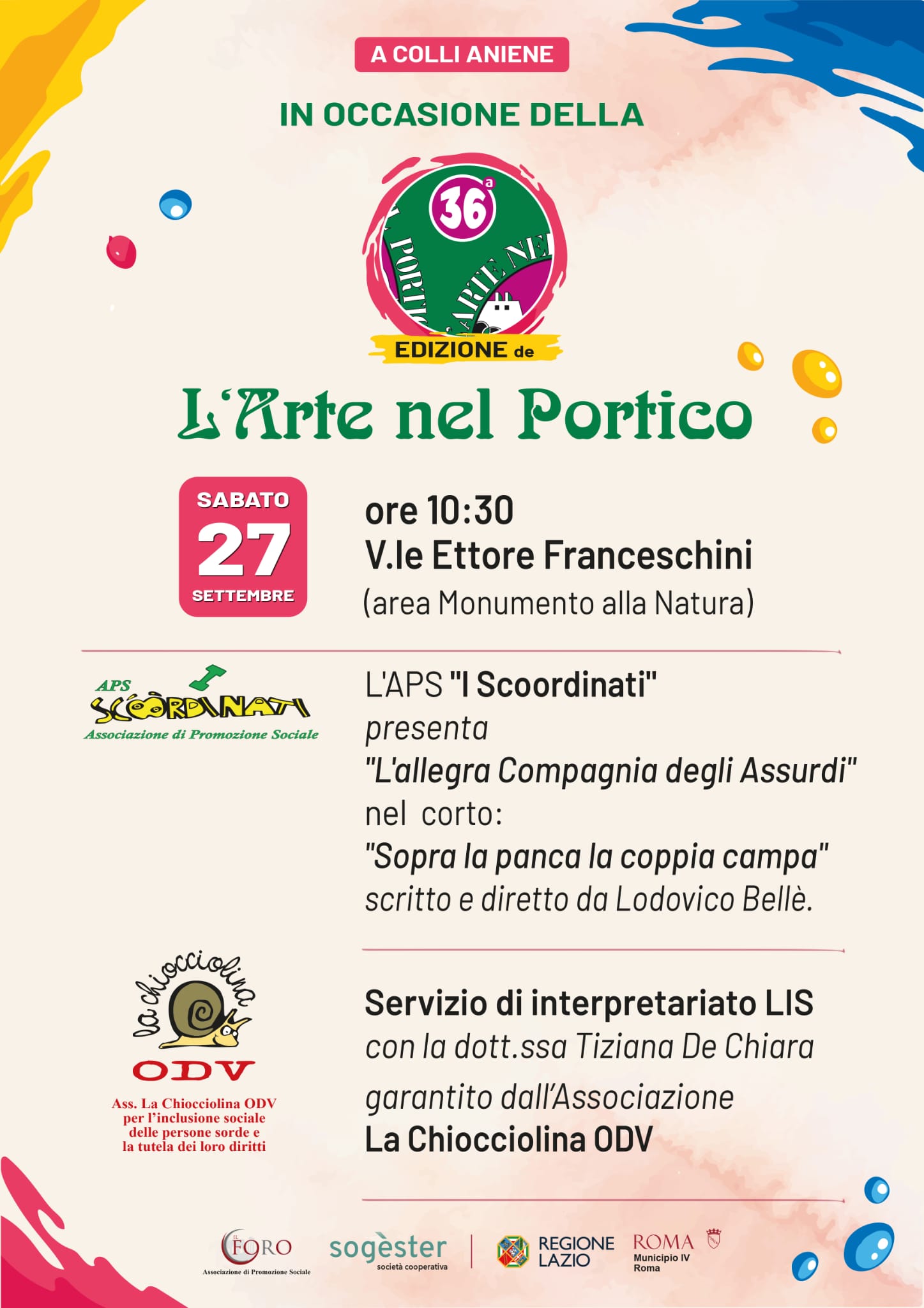 SABATO 27 SETTEMBRE ORE 10:30 IN VIALE ETTORE FRANCESCHINI (Area Monumento alla Natura davanti alla COOP) NELL'AMBITO DELLA 36° EDIZIONE DELL'ARTE NEL PORTICO