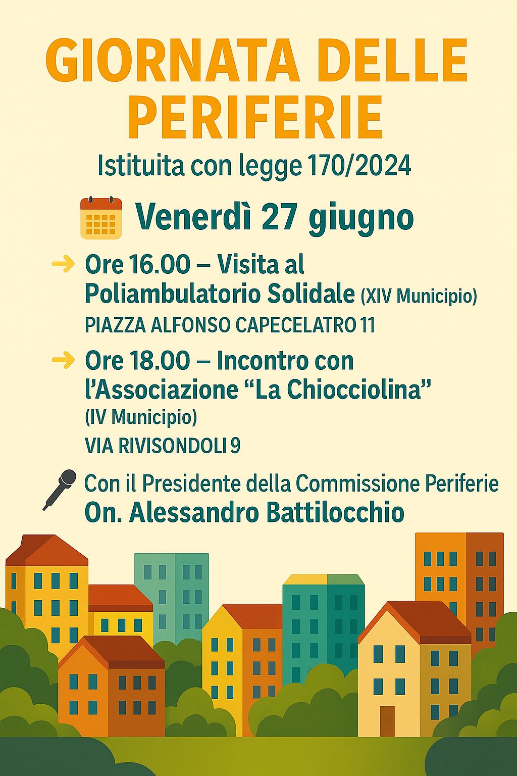 VENERDI' 27 GIUGNO ORE 18:OO SEDE VIA RIVISONDOLI - INCONTRO CON IL PRESIDENTE DELLA COMMISSIONE PARLAMENTARE PERIFERIE ON. ALESSANDRO BATTILOCCHIO