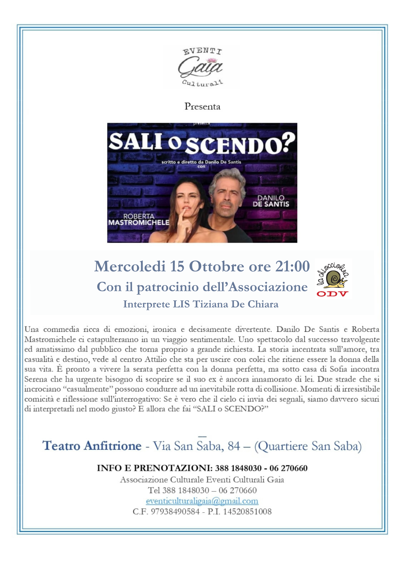 "SALI O SCENDO?" scritto e diretto da Danilo De Santis con Danilo De Santis e Roberta Mastromichele